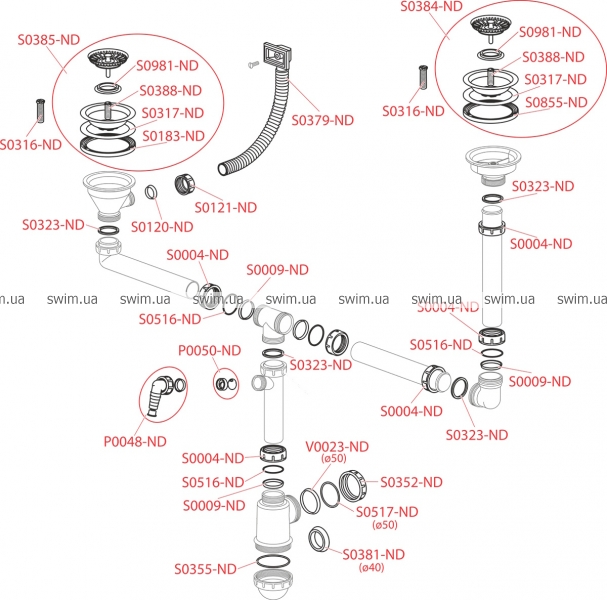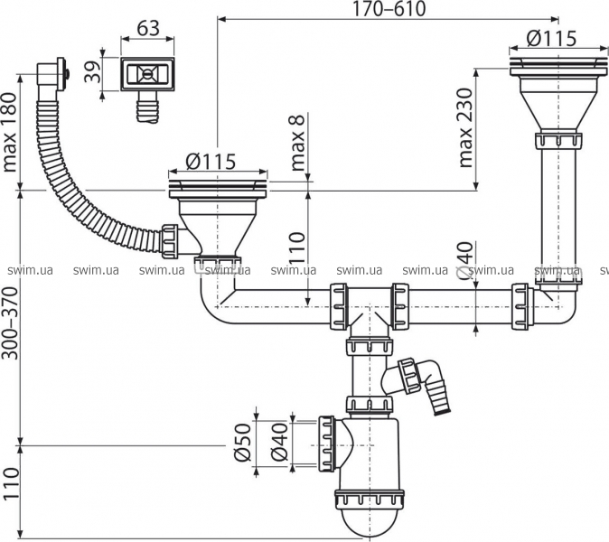 - Можливість підключення каналізаційної труби Ø50 або Ø40 мм