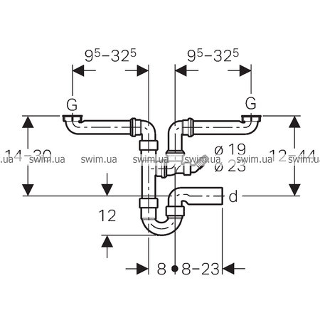 Сифон на 2 сливных отверстия Geberit 152.818.11.1