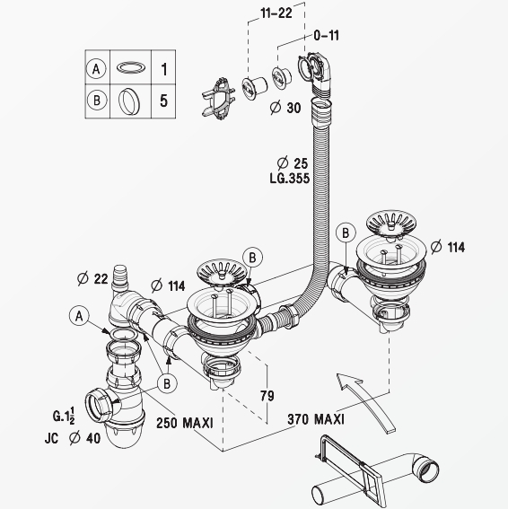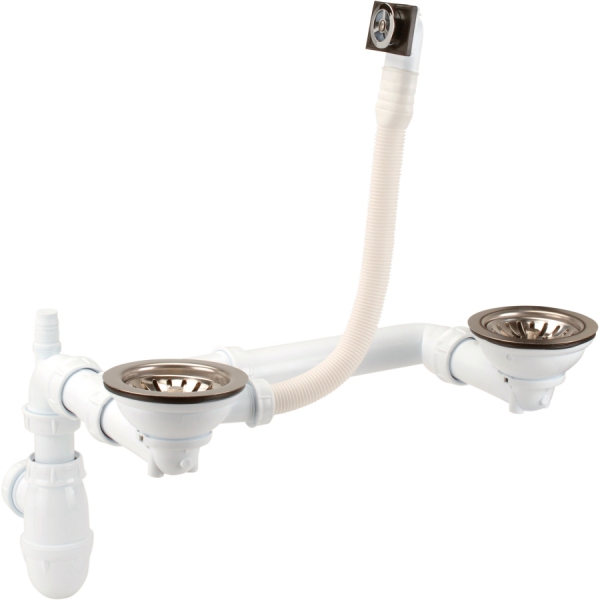 - Комплект сливной и переливной арматуры для двухсекционной мойки