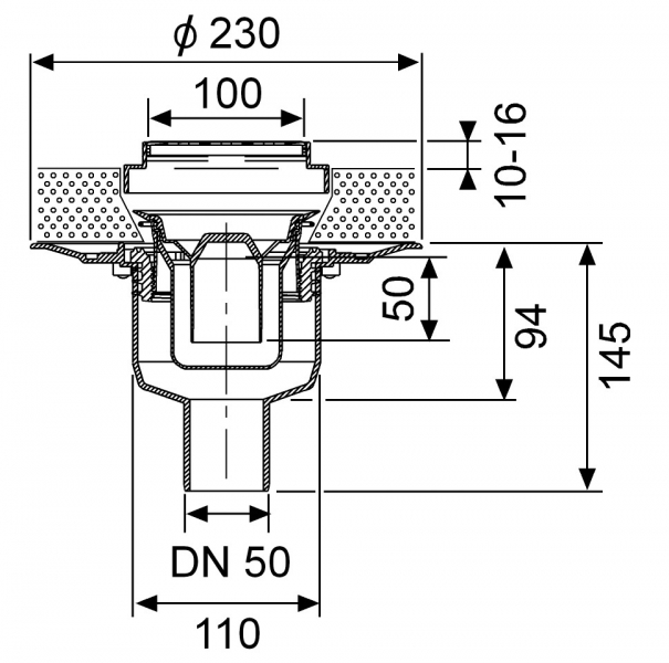 Сифон с вертикальным отводом ТЕСЕdrainboard, DN 50, с декоративной решеткой “basic”