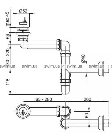 A413 CИФОН ДЛЯ УМЫВАЛЬНИКА ЭКОНОМЯЩИЙ ПРОСТРАНСТВО Ø63