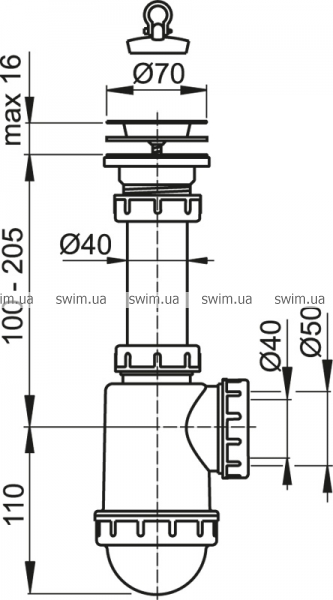 Сифон Alca Plast A441 Ø50/40 для мойки