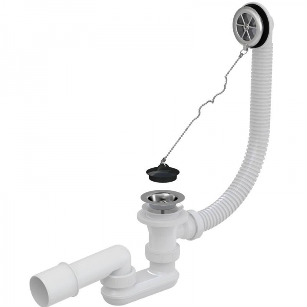 Весь производственный ряд сифонов фирмы Alca plast использует материалы, стойкие к воздействию высоких температур и всех обычно используемых чистящих средств. Материалы уплотнений наряду с конструкционным исполнением отличаются высокими плотностью и стойкостью к чистящим средствам. В результате решения формы сифонов достигаются высокие величины потока (с запасом превышается поток, установленный стандартами), а в результате решения внутренних форм эффективно снижается засорение. Классические классические сифоны для ванн т.е с пробкой на цепочке. Пробка изготовлена из резины, а решетка для пробки из полированного нержавеющего листового металла. Решетка перелива может быть выполнена из белой пластмассы или хромирована. Управляемые управление пробкой сифона с помощью кнопки, закрывающей перелив. Кнопка управления может быть изготовленна из белой или хромированной пластмассы или из медного хромированного сплава. Пробка, в зависимости от комбинации с кнопкой управления, пластмассовая с металлической хромированной крышкой или полностью металлическая выполненная из хромированной латуни. Пробка может быть изготовленна в варианте с крышкой (типа грибок), полностью закрывающей решетку. Поставляются варианты длиной 600-1200 мм.
