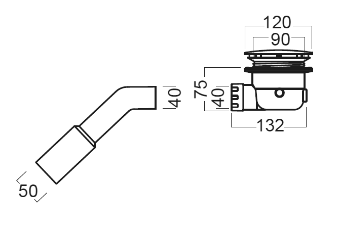 Выпускная арматура на 90 мм с хромированной крышкой. Гидрозатвор съемный, удобный в обслуживании.