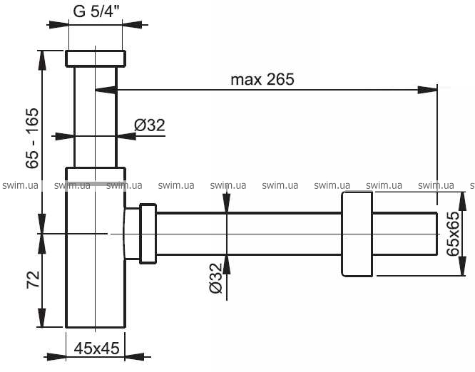 - Резьбовое соединение 5/4" для подключения слива раковины или биде