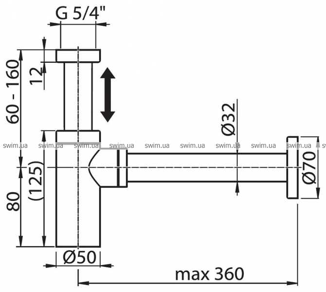 - Хромированный телескопический сифон из латуни для умывальника