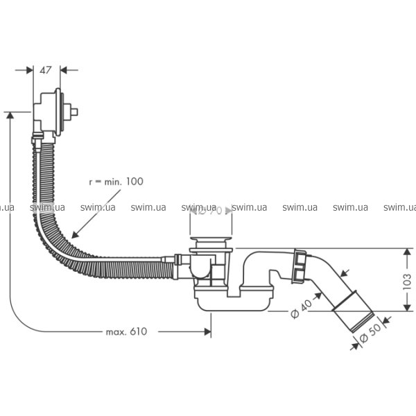 Сифон для ванны Hansgrohe Flexaplus 58140180 слив/перелив