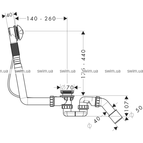 ГоловнаСифониHansgrohe → Сифон для ванны Hansgrohe Flexaplus 58148000 слив-перелив