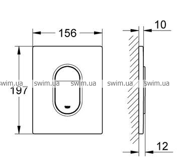 Ее размер составляет 156 x 197 x 10 мм, а матовая поверхность GROHE StarLight долговечна и ее легко чистить. Панель также экологична! Двойная система смыва предлагает вам выбор объема смыва: 3 или 6 литров (или 3 и 4,5 литра для некоторых унитазов). Кроме того, смыв возможно остановить с помощью маленькой кнопки.