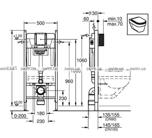 Благодаря технологии GROHE QuickFix®, вы установите инсталляционную систему в мгновение ока, будь это монтаж перед стеной или в гипсокартонную перегородку.