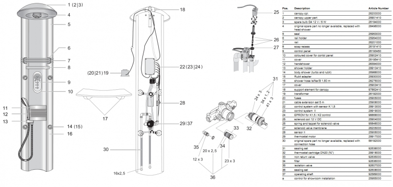 - Система управления с датчиком K 1,5 для душевой панели DP-E EL40