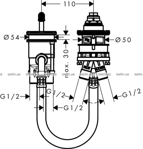 - соединительная резьба: G ½