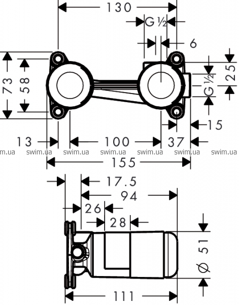 → Скрытая часть Hansgrohe Logis 13622180 для настенного смесителя