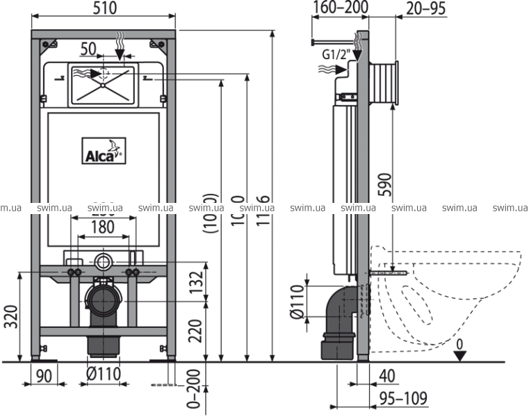 → Скрытая система инсталляции Alca Plast A101/1200 Sádromodul Slim