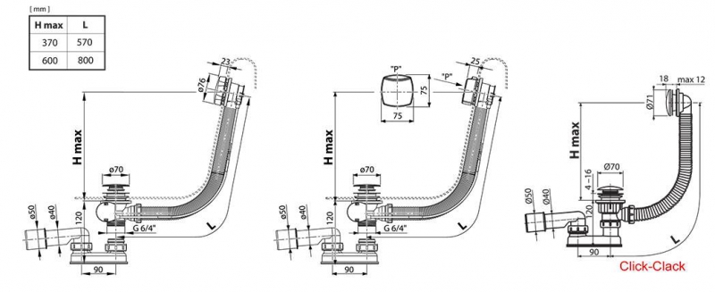 Есть возможность дополнить ванну сточным комплектом для ванны с переливом в двух вариантах: управление тросиком или системойClickClack. Оба варианта представлены с/без заполнения переливом.