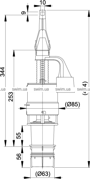 - Выпуск с диаметром 60 мм для монтажа в бачке