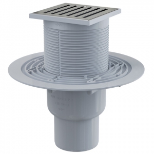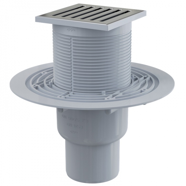 APV203 СЛИВНОЙ ТРАП 105×105/50/75 ММ ПРЯМОЙ СТОК, РЕШЕТКА ИЗ НЕРЖАВЕЮЩЕЙ СТАЛИ, ГИДРОЗАТВОР – МОКРЫЙ
