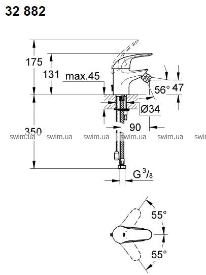 Смеситель для биде Grohe Euroeco 32882000 с цепочкой