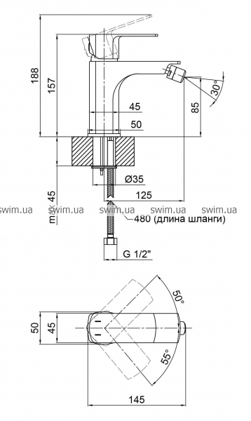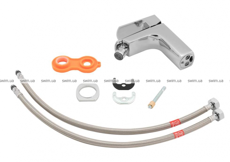 - Комплектация: смеситель, гибкая подводка, крепежи