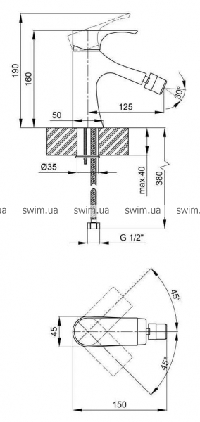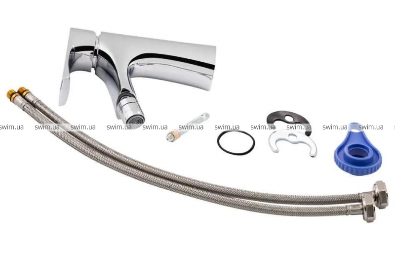 - Комплектация: смеситель, гибкая подводка, крепежи