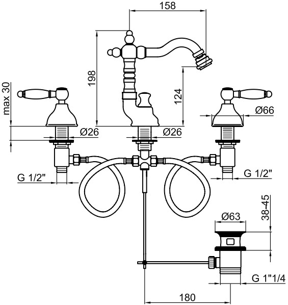 - Смеситель для биде на три отверстия с дистанционным сливом
