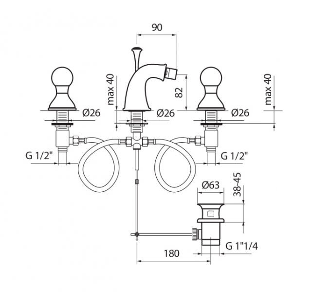 - Смеситель для биде на 3 отверстия