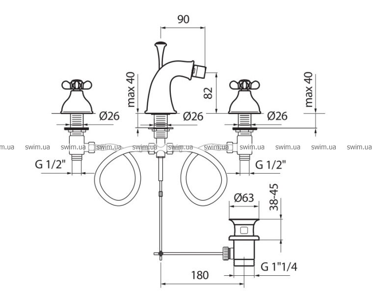 - Смеситель для биде на три отверстия