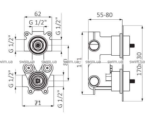 Встроенные смесители в стену укомплектованы, прямоугольной формы, декоративными пластинами, смесители могут быть на один, два и три потребителя для воды.