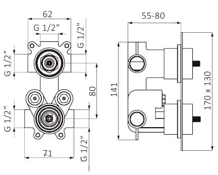 Встроенные смесители в стену укомплектованы, прямоугольной формы, декоративными пластинами, смесители могут быть на один, два и три потребителя для воды.