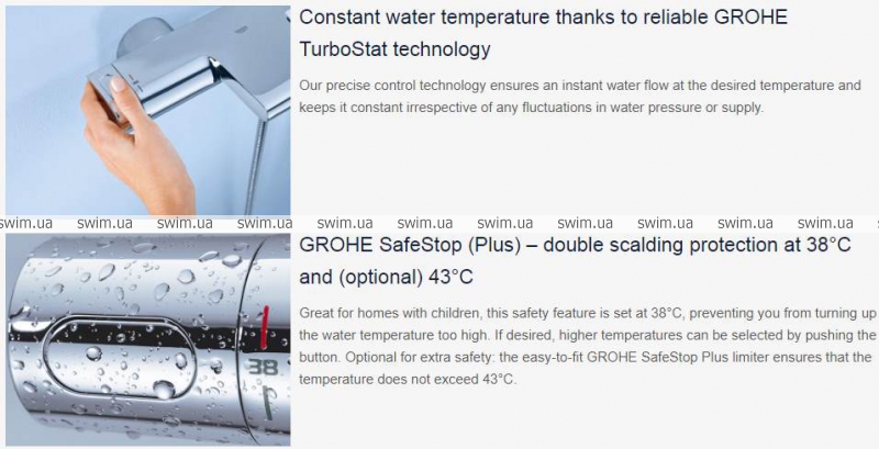 - GROHE SafeStop - предустановленный ограничитель температуры на 38 ° C