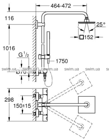 - дополнительная опция: полочка GROHE EasyReach (26362), заказывается отдельно