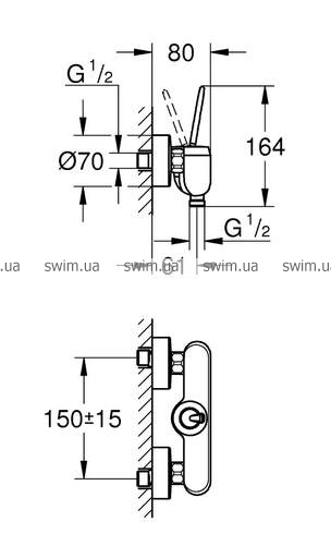- настенный монтаж на два отверстия