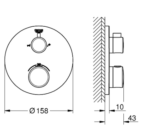 - GROHE SafeStop Plus® (дополнительная опция) - ограничитель температуры воды до 43°C/46°C