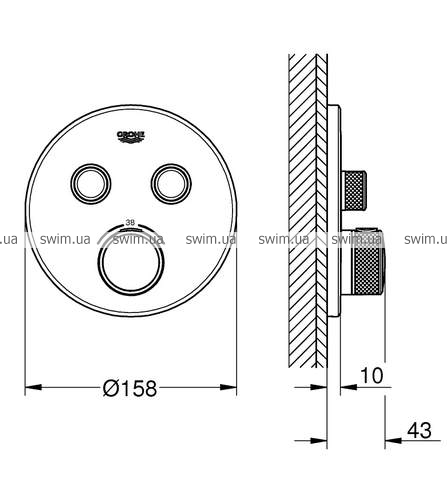 - Заказывается отдельно: скрытая часть (35600000 GROHE)