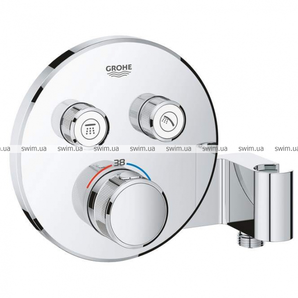 В поисках универсальной модели, сочетающей стильное внешнее оформление и качественный функционал, обратите внимание на смеситель GROHE Grohtherm SmartControl. Конструкция данной модели отличается наличием встроенного держателя ручного душа, что является компактным решением для укомплектования небольших ванных комнат.