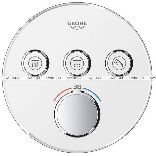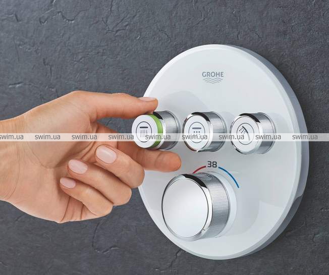 - GROHE SmartControl® инновационное управление - включается нажатием кнопки Вкл/Выкл, увеличение водного потока поворотом рукоятки от режима EcoJoy (минимальный) до Full Flow (максимальный)