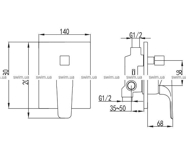- смеситель встроенный для ванны/душа