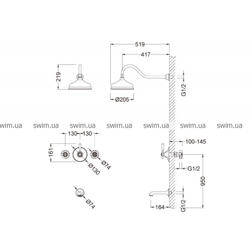 - Система изготовлен из твёрдой латуни с хромовым напылением