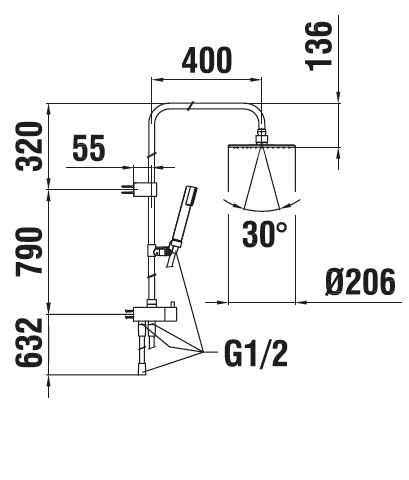 - Расход потока верхний душ: 8.5 л/мин (3 bar)