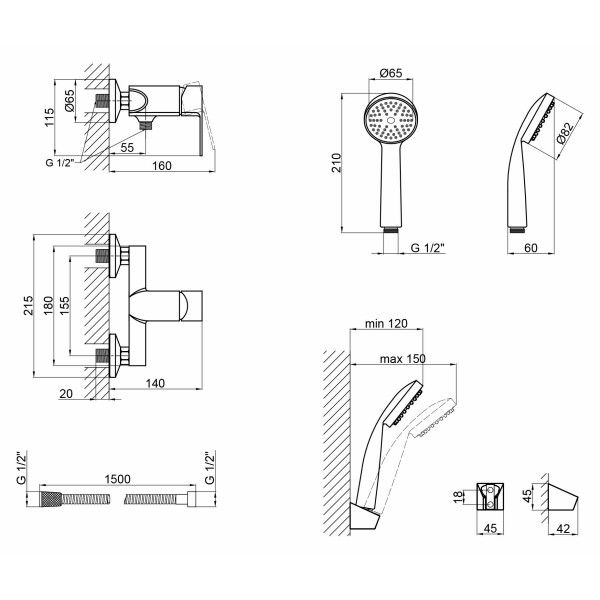 - Комплектация Смеситель, душевой шланг, лейка для ручного душа. Кронштейн для ручного душа. Крепеж.