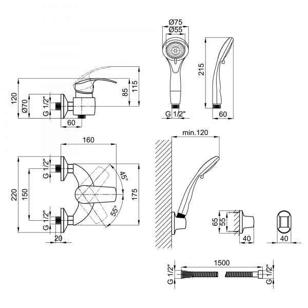 - Комплектация Смеситель, душевой шланг, лейка для ручного душа, держатель для ручного душа. Крепежи.