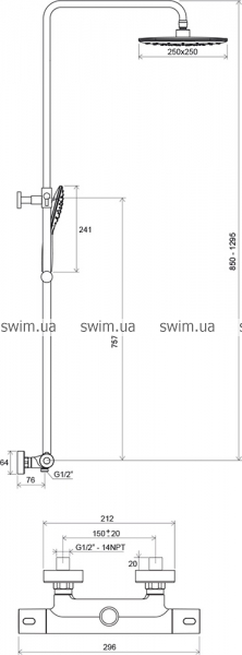 Душевая стойка TE 093.00/150 с термостатическим смесителем и ручным душем подойдет для любых ванн и уголков.