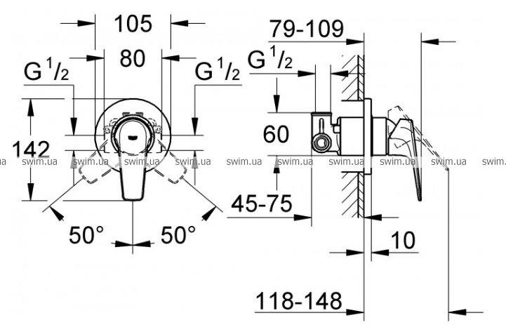 - однорычажный смеситель для душа Grohe Bau (29042000)