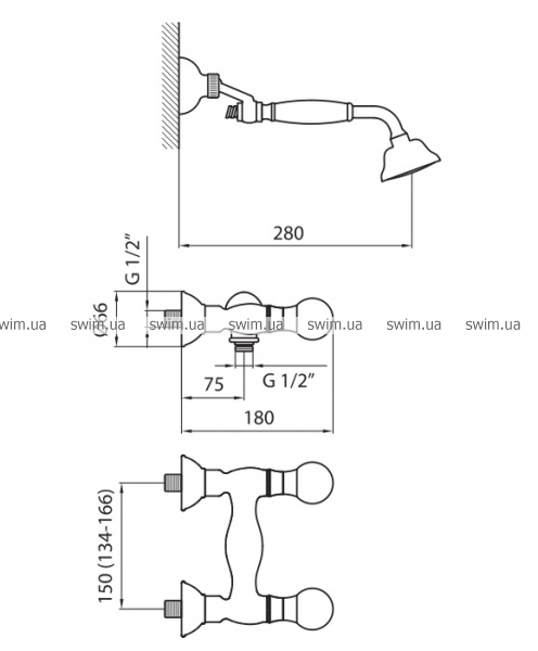 - Настенный смеситель для душа