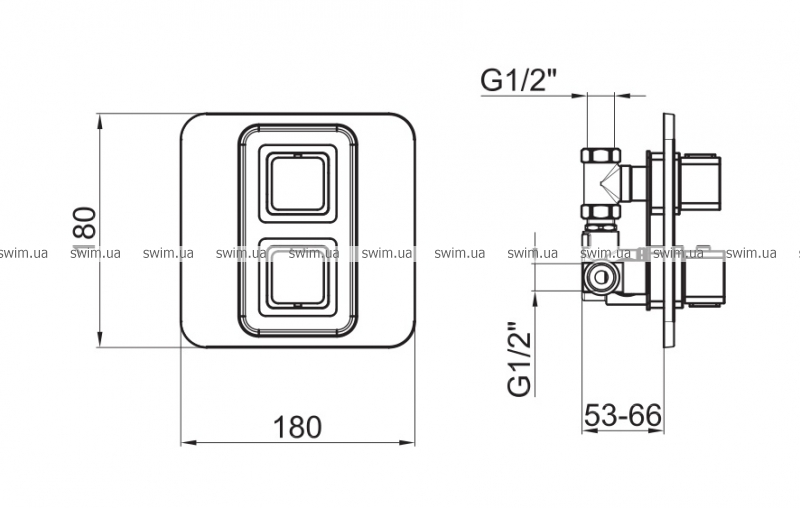 - Термостатный смеситель встраиваемого типа для душа с однорежимным переключателем
