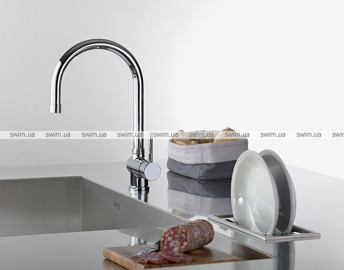 1) Смеситель для кухни однорычажний Paffoni Stick с подключением для фильтрованной воды хром