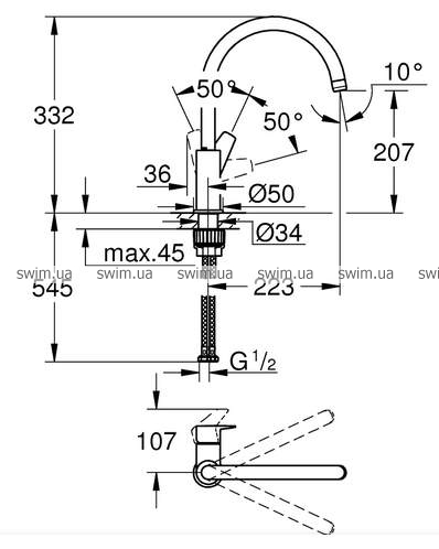 - GROHE Zero Раздельные пути подачи воды - не содержит никеля и свинца
