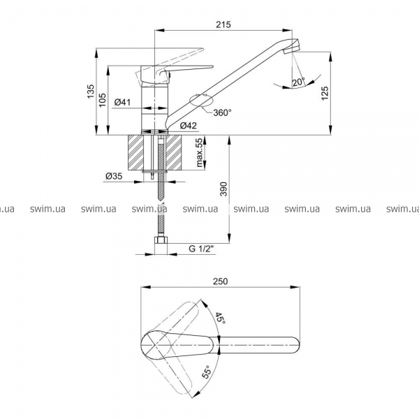 - Высота излива, мм 125