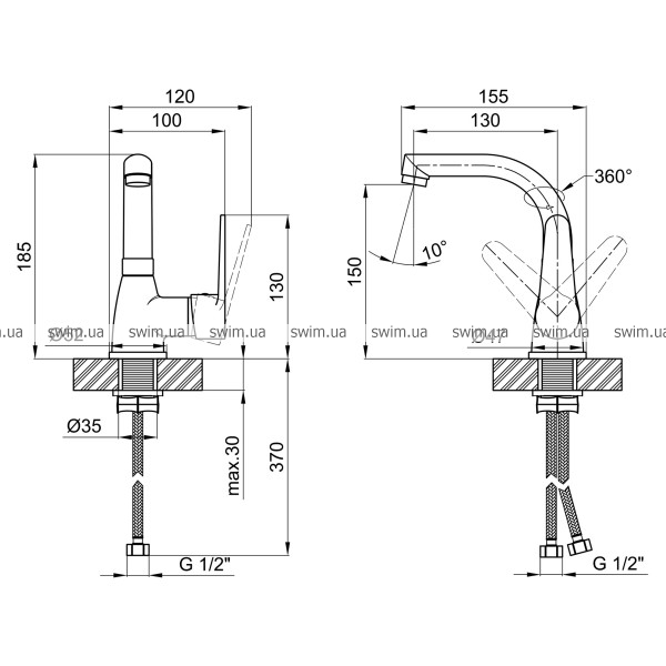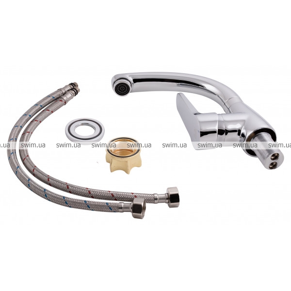 - Комплектация Смеситель, гибкая подводка, крепежи.