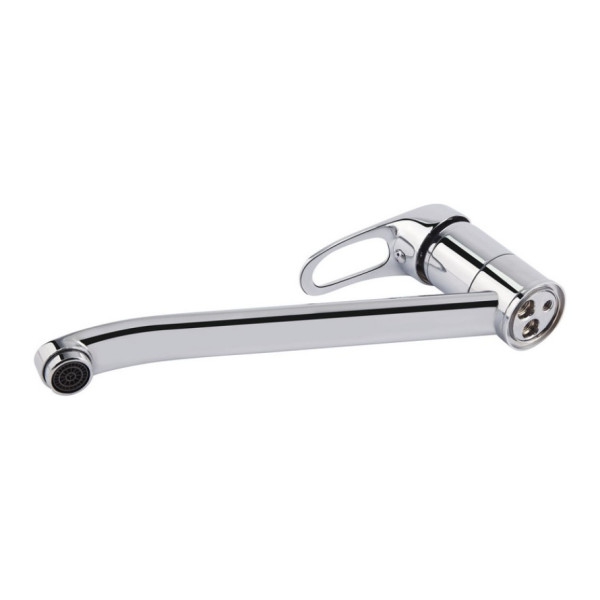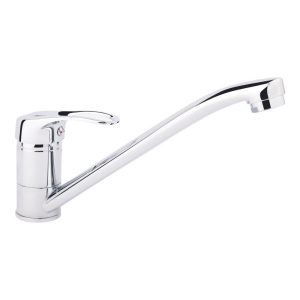 Смеситель для кухни с поворотным изливом Lidz (CRM) 16 37 002 00 выполнен с глянцевой блестящей поверхностью. Он монтируется над кухонной мойкой в столешницу врезным способом. Подача воды включается благодаря картриджу после поворота рычага в необходимое положение. Для удобства на него нанесена маркировка Х+Г воды и добавлено отверстие против скольжения мыльных рук.